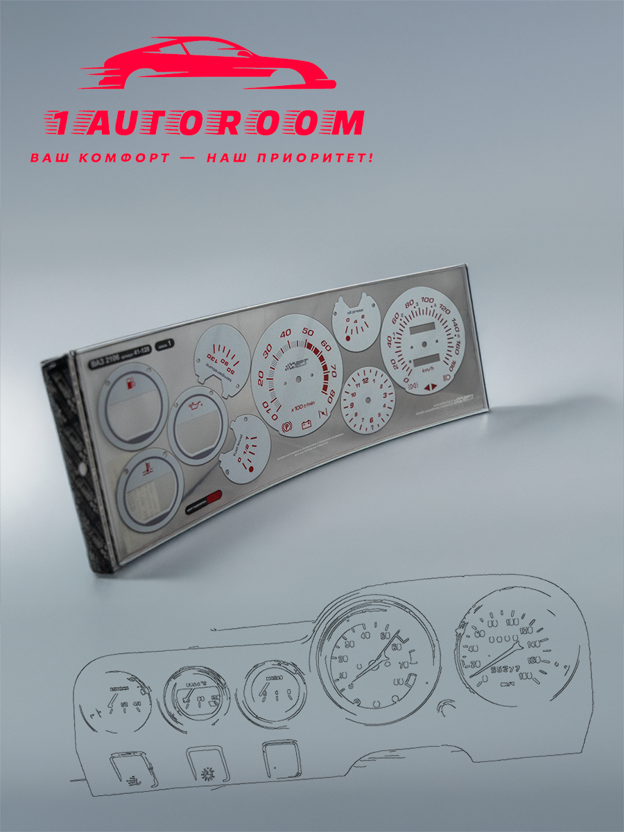Накладка на панель приборов ВАЗ-2106 белого цвета помогает вернуть панели заводской вид и делает салон «шестёрки» аккуратным и современным. Это готовая вставка, которая точно повторяет форму штатного щитка, имеет вырезы под все приборы и индикаторы и обеспечивает удобочитаемость шкал даже в темноте.